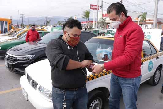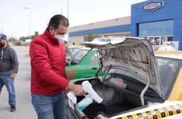 Para reforzar las medidas de salud, tal y como se realizó en las unidades de transporte urbano, ahora le tocó el turno a los taxis, donde una vez desinfectado el vehículo se les proporcionó cubre bocas y gel antibacterial.