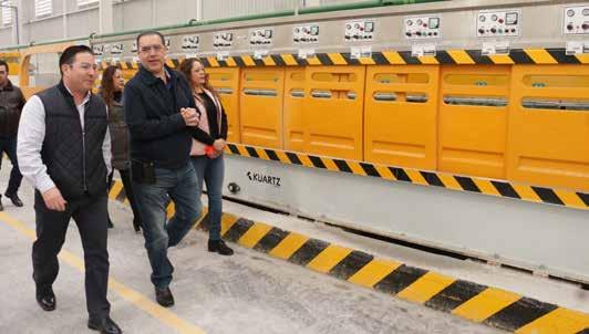 En acto seguido realizaron un recorrido al interior de la empresa para una demostración de cómo se fabrican placas de cuarzo para recubrimiento y de una breve explicación de cómo estos productos hechos en Juárez son exportados hasta Estados Unidos.