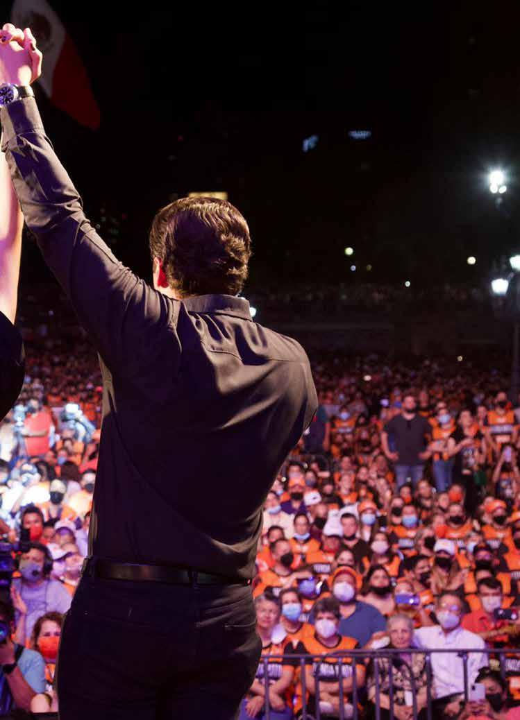“Juntos ya logramos sacar a la vieja política, juntos salieron a votar los jóvenes. Por eso hoy lunes 7 de junio, Nuevo León se pinta naranja, seremos el Estado y la ciudad con los mejores gobiernos.