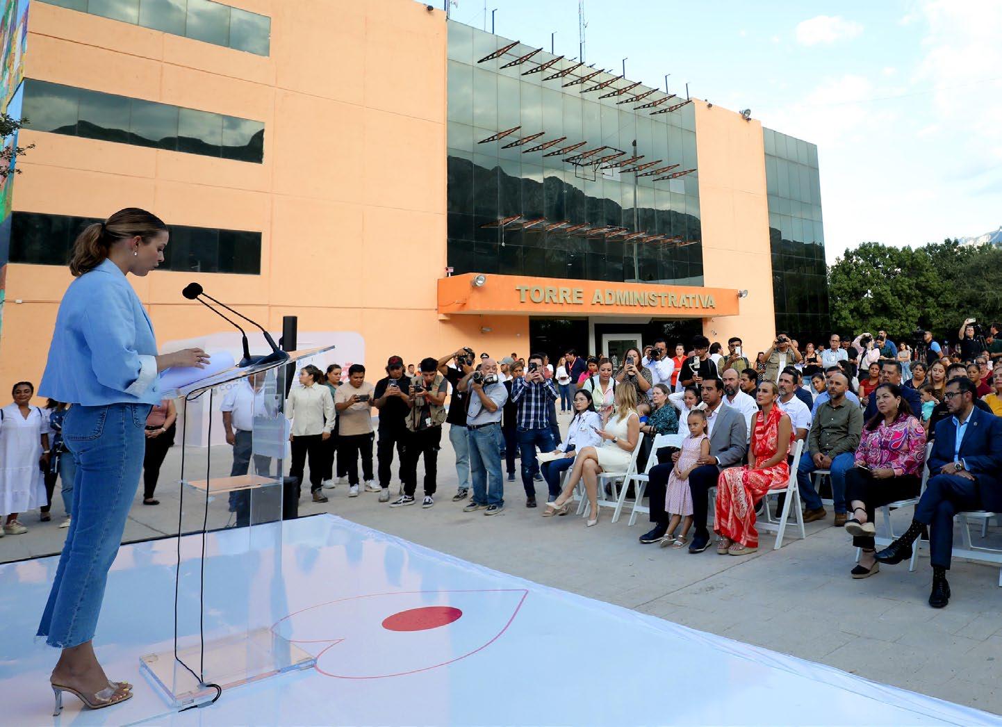 Mariana Rodríguez Cantú, titular de AMAR a Nuevo León, y Alma Rosa Marroquín Escamilla, Secretaria de Salud, realizaron el corte del listón junto a Jesús Nava Rivera y Paola Edith García de Nava, Alcalde y Presidenta del DIF Santa Catarina.