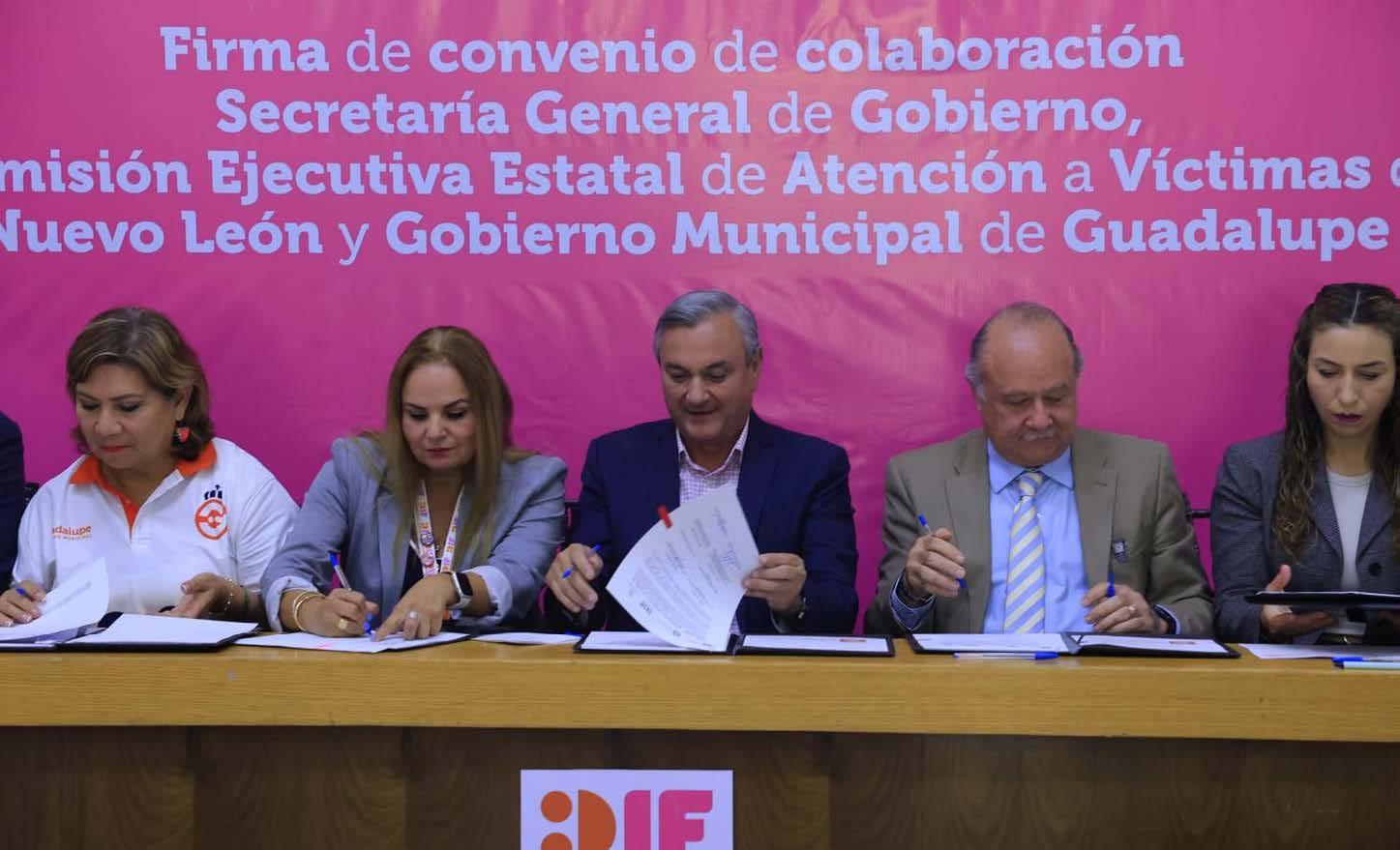 El Gobierno de Guadalupe y La Secretaría General de Gobierno del Estado de Nuevo León, a través de la Comisión Ejecutiva Estatal de Atención a Víctimas, firmaron un convenio para fortalecer la atención a personas víctimas de delito y violaciones a derechos humanos en el Municipio de Guadalupe.