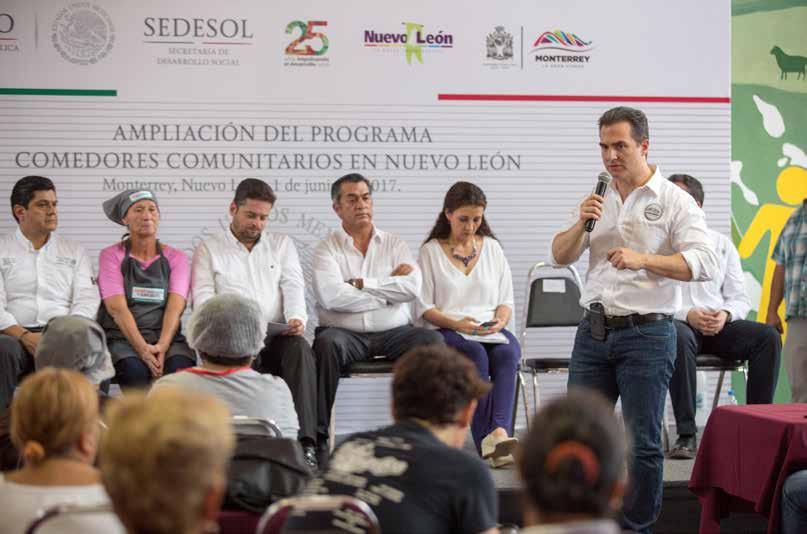 “El Gobierno Federal, adicional a los 2 mil 600 millones de pesos que ya teníamos destinados presupuestalmente invertir este año en Nuevo León, que los usamos para atender más o menos a 600 mil personas a través del Programa del Adulto Mayor, de Prospera, de todos los programas estamos adicionando 30 millones de pesos más, porque nos pidió el Presidente de la República, el Secretario Miranda que fortaleciéramos el programa de Comedores Comunitarios, vamos a abrir 30 más y esperamos que si seguimos trabajando en equipo podamos seguir abriendo más comedores”, indicó.