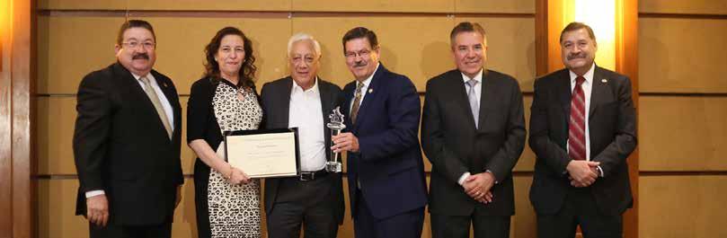 El Rector Rogelio Garza Rivera entregó un diploma y una escultura de la Flama Universitaria a los homenajeados.