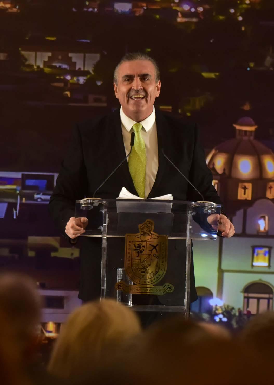 “A 90 años de historia, que de manera oficial celebramos en este mes, pero cuyos primeros orígenes sucedieron hace casi dos siglos con el comienzo de la impartición de cátedras de Jurisprudencia y Medicina, el día de hoy nos sentimos más fortalecidos que nunca, con la firme convicción del poder transformador de la educación y, con el pasar de los años, nos sentimos más comprometidos a seguir activos y vislumbrar un futuro que nos llena de esperanza y motivación para luchar por alcanzar las metas y objetivos trazados en nuestro Plan de Desarrollo Institucional”, enfatizó el Rector de la UANL, Santos Guzmán López.