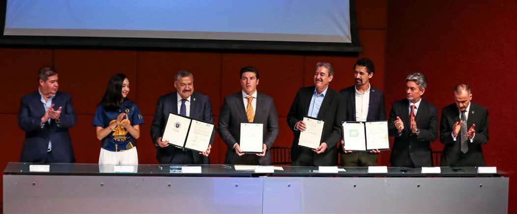La firma del convenio se llevó a cabo entre el titular de Metrorrey, Abraham Vargas; el Rector de la UANL, Santos Guzmán López; y el Gobernador del Estado, Samuel García Sepúlveda en presencia de funcionarios locales, estatales y estudiantiles.