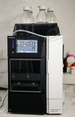 Es una técnica utilizada para separar los componentes de una mezcla. Un equipo de muy alta performance, de tecnología de última generación que se utiliza en medioambiente, en general para detectar trazas de elementos que uno quiera estudiar. Se utiliza en efl uentes, para determinar contaminantes, productos químicos, glifosato en agroecología, para ver si hay o no hay derivados del mismo, en agua, en tierra… Es un equipo de mucha sensibilidad y especifi cidad que puede detectar sustancias de todo tipo, orgánicas en general que se requieren para estudios de composición, contaminantes, calidad, etcétera.