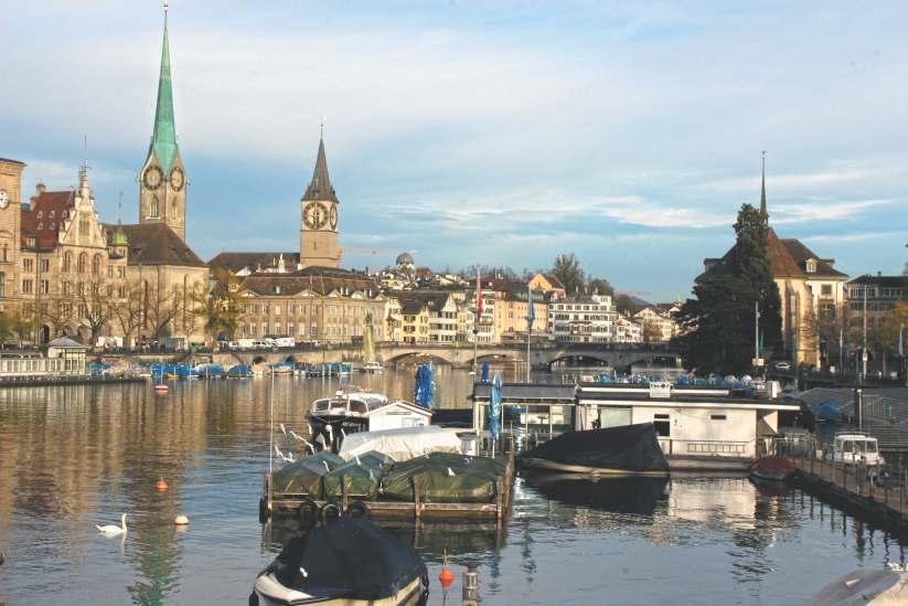 Caminhar pelo centro histórico é um dos melhores passeios, lá estão localizadas as igrejas Fraumünster, Grossmünster, Predigerkirche e St. Peter
