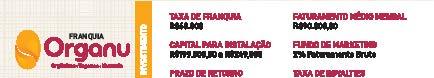 Investimento total a partir de R$ 199 mil Neste valor, está incluso:Taxa de franquia:R$50mil, mil, Custo de instalação e Capital de giro