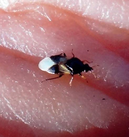 2. Geocoris punctipes e G. pallens (Hemiptera: Geocoridae). É o Percevejo de Olhos Grandes, medindo 3,6 mm e como o próprio nome sugere vive sobre o solo. Sobe constantemente para as plantas como na foto à caça de presas até o seu tamanho que são preferencialmente ovos, larvas de lepidopteros de 1º. Estágio, ácaros e seus ovos, moscas brancas, etc. Os ovos são alongados e claros, depositados isoladamente ou em grupos, nas folhas próximas às presas em potencial. O ciclo biológico é de 30 dias de ovo a adulto. Ninfas e adultos são predadores, mas podem sobreviver com néctar e pólem quando as presas são escassas. Seus aparelhos bucais são perfurantes e atacam suas presas sugando os conteúdos da hemolinfa. G. punctipes segundo Lingren e colaboradores em 1968, pode consumir 1,9 ovos e 1,4 larvas de 1º. Instar de H. virescens em ponteiros de algodão por dia, equivalendo a eficiência de 78 a 94% de controle, respectivamente. Estas taxas, contudo foram um pouco maiores quando se utilizou 32P no Texas. E nos nossos estudos com Alabama argillacea conforme já citado, o consumo foi de 2,0 ovos e 1 larva de 1º. Instar/dia. Estudos mostraram que as ninfas podem consumir até 1.600 ácaros antes de atingir a idade adulta, enquanto os adultos consomem até 80 ácaros por dia. Observações dão conta de que esses percevejos de olhos grandes são predadores efetivos de ovos de Lagarta Rosada do Algodoeiro Pectinophora gossypiella