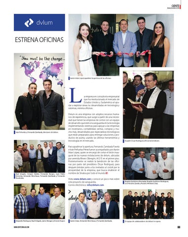Para apadrinar la apertura, Fernando Zambada Favela e Iván Peñuelas Pérez fueron acompañados por Aarón Irízar López, quien se encargó de cortar el listón inaugural de las nuevas instalaciones de dvlum, ubicadas por avenida Álvaro Obregón, #1215 en el primer piso. Posteriormente se realizó la bendición de las oficinas por parte del presbítero Óscar Rodríguez, para después brindar junto a los invitados al cóctel por la prosperidad de la empresa, que busca enaltecer el nombre de Sinaloa por todo el mundo. Visita www.dvlum.com y conoce un poco más sobre este proyecto de vanguardia. Correo electrónico: info@dvlum.com