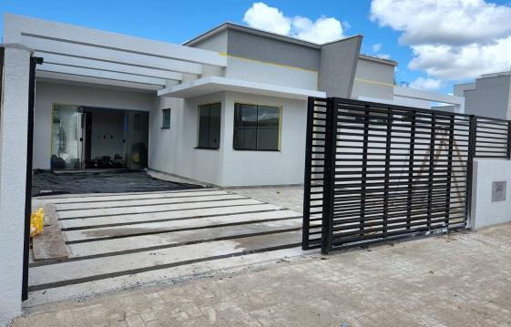Casa nova com 72m², 3 quartos (sendo 01 suíte), 2 banheiros (suíte + social), sala estar/jantar, cozinha, churrasqueira e área de serviço.Amplo terreno nos fundos.