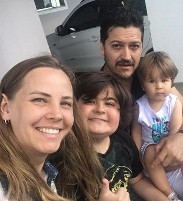 Caetano (ao centro) com sua mãe Karla, o pai Paulinho e seu irmãozinho Joaquim.