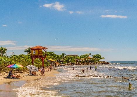 Em um breve passeio é possível visitar todos os pontos turísticos da região que a margeia: o farol do Pontal, o píer de observação do Porto, o trapiche e, claro, o belo cenário do encontro entre a areia branca, o ritmo tranquilo do mar eos coloridosbarcosde pesca