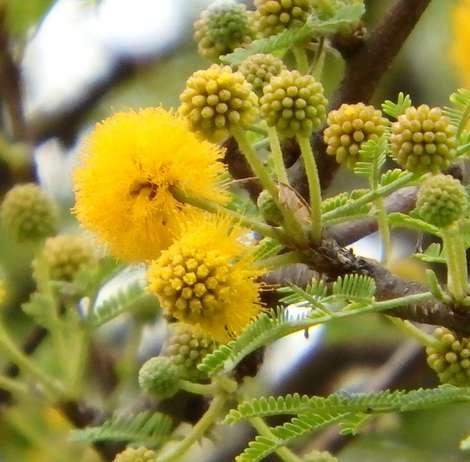 Conocida científicamente como Acacia farnesiana, puede alcanzar alturas de hastacincometros,sushojas,pequeñasy bipinnadas, parecen plumas, sus frutos son vainas moreno rojizas que permanecen en el árbol después de madurar, mientras que sus flores amarillas se agrupan en cabezuelas que surgen de las axilas de las espinas, apiñadas en bolas densas que con frecuencia cubren el árbol, creando una apariencia de masa amarilla vibrante entre marzo y abril, y no solo eso, es muy conocido por el dulce aroma que desprenden