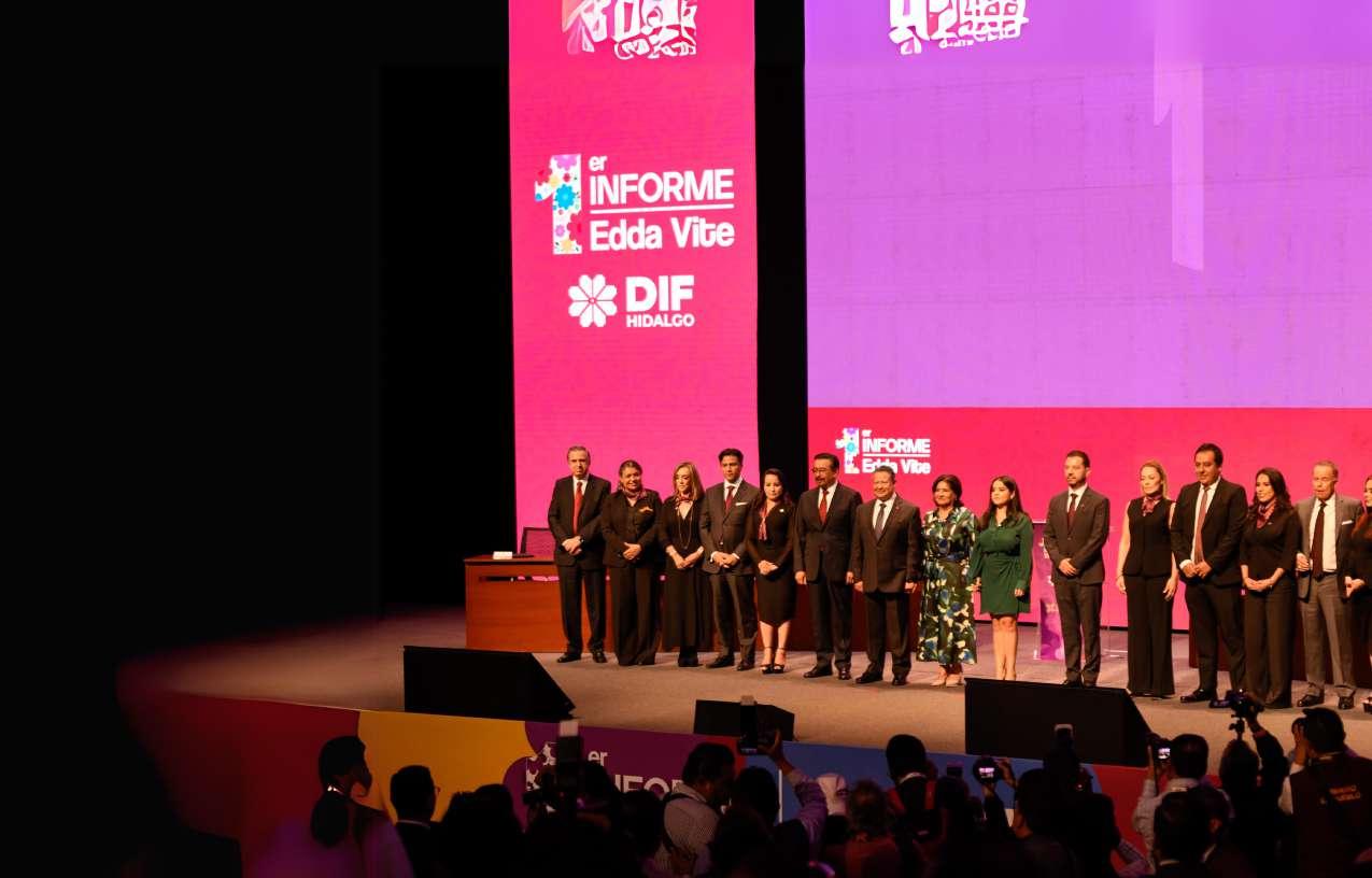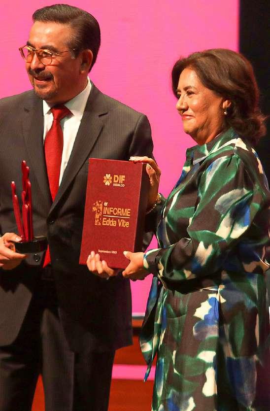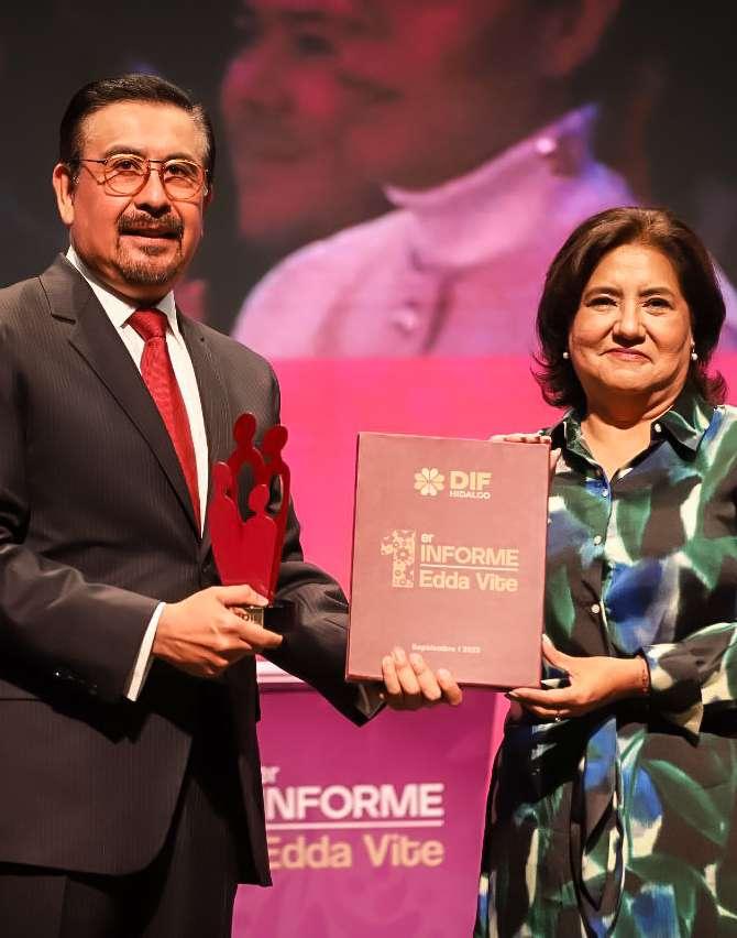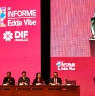 La renovación de un sistema de asistenciasocialdondeimperauntrabajo cercano con el pueblo es uno de los mayores logros del Sistema para el Desarrollo Integral para la Familia del Estado de Hidalgo (DIFH), así lo afirmó Edda Vite, presidenta del Patronato de dicho organismo, durante el Primer InformedeResultadosdesugestión,enel AuditorioGotadePlata