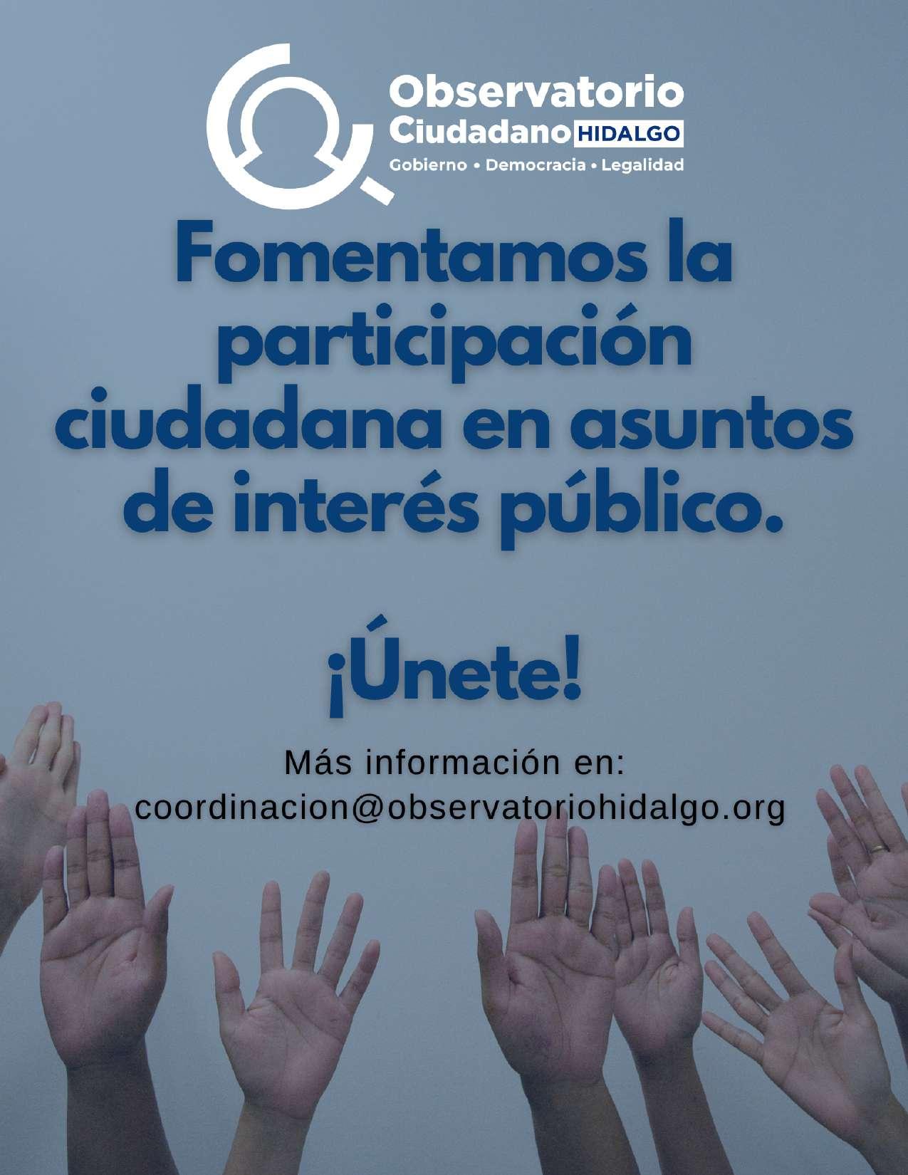 Queda prohibida la reproducción parcial o total del contenido de la presente publicación, por cualquier medio o procedimiento sin el consentimiento del Observatorio Ciudadano de Gobierno, Democracia y Legalidad del Estado de HidalgoAC