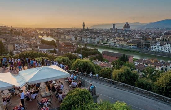 Atravessando o rio, na região conhecida como Oltrarno, está a Piazzale Michelangelo, que fica lotada na hora do pôr do sol por conta do panorama deslumbrante. A praça está localizada no topo de uma colina, que pode ser acessada em uma subida a pé ou de ônibus. Lá do alto, vê-se toda a cidade, com a cúpula da catedral se elevando acima de tudo.