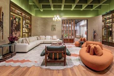 Nas duas últimas edições da CASACOR, diversos ambientes revelaram peças diferenciadas, que transitaram do design biofílico à inusitada utilização de Inteligência Artificial para transformar as ondas sonoras de uma música indígena em ondulações visuais inseridas no desenho do tapete.