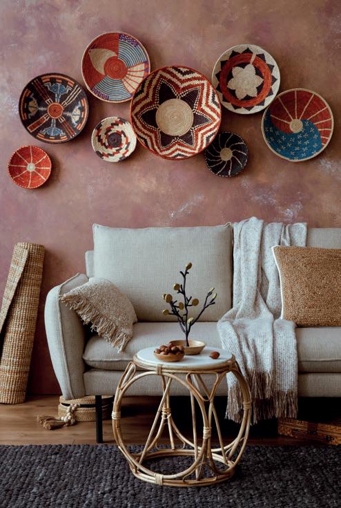 Embora seja um estilo único e versátil, que acolhe muitos elementos com diferentes propostas para refletir o gosto do próprio morador sem se preocupar muito com regras, convém seguir algumas orientações para assegurar a harmonia da decoração. O primeiro passo é remover do mobiliário objetos de materiais sintéticos e industrializados, como plásticos, resinas e pinturas laqueadas, abrindo espaço para elementos mais rústicos e naturais. Formas orgânicas e acabamentos em lâmina de madeira natural, palhinha e pedras naturais são escolhas certas. Também vale apostar em luminárias, cestas, cadeiras e molduras feitas de fibras naturais, como palha, sisal, coco e vime, além de incluir plantas, que sempre reforçam a atmosfera de conexão com a natureza e proporcionam um toque extra de frescor e tropicalidade aos lares brasileiros. “Todas as espécies são bem-vindas, mas algumas, como ficus lyrata, jiboia e zamioculca, são de fácil manutenção e ficam muito bem dentro de casa”, recomenda Kathia. Para criar uma composição alegre e harmoniosa com a vegetação, vasos de tamanhos, cores e materiais diferentes são uma boa alternativa.
