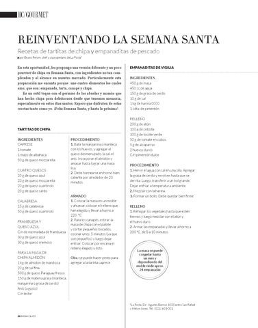 Reinventando la Semana Santa Recetas de tartitas de chipa y empanaditas de pescado por Bruno Peroni, chef y copropietario de La Posta*