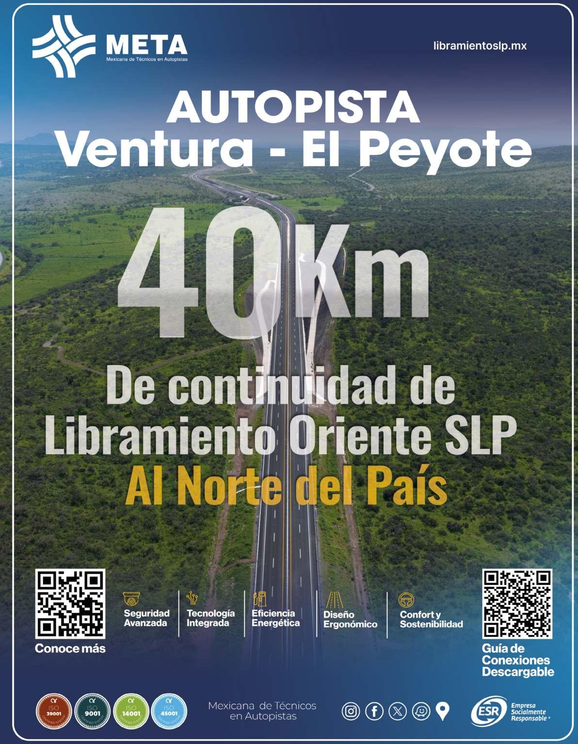 Grupo Meta inaugura 40km de autopista, la cual aumenta la que se construyó hace más de 25 años, el libramiento Oriente de San Luis Potosí, felicitamos por este medio al Sr. Vicente Rangel Mancilla y a su grupo Meta por llevar a cabo esta importante obra que ayudará a la movilidad del autotransporte en el país, así como a la sociedad en general.