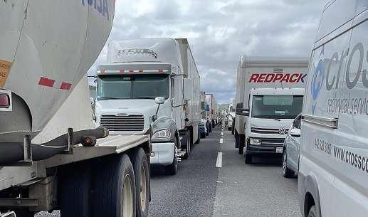 Quedan atascados vehículos por más de 14 horas en carretera SLP-QRO.