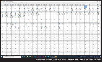 A última etapa do projeto, que consiste em gerar a typeface para ser utilizada por terceiros foi realizada no software FontForge.