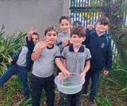 A Escola Municipal (EM) Professor Sylvio Sniecikovski recebeu quatro colônias de abelhas sem ferrão (Jataí, Mirim Droryana e Mandaçaia), despertando a curiosidade dos estudantes sobre sua importância ambiental. A turma do quinto ano do Ensino Fundamental assumiu a responsabilidade principal pelo projeto, cuidando do meliponário e monitorando o desenvolvimento das abelhas. Os alunos fazem visitas semanais para observação, registro de crescimento dos potes de mel e, se necessário, alimentação complementar. O meliponário se tornou um “laboratório vivo”, promovendo o aprendizado significativo, a investigação e o respeito pela natureza em toda a comunidade escolar.