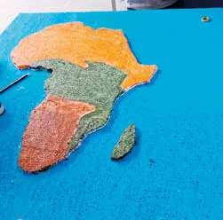 As turmas do oitavo ano do Ensino Fundamental produziram maquetes do continente africano para exemplificar seus conhecimentos durante as aulas do professor de Geografia, José Carlos Masulo Bruce. Além da prática, os estudantes se preparam para um seminário sobre clima, vegetação, culturas e tradições do continente.