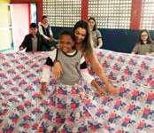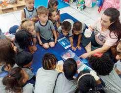 Durante as aulas de Língua Portuguesa da Escola Municipal CAIC Professor Mariano Costa, o professor José Carlos Masulo Bruce desenvolveu uma série de atividades interativas nos momentos na biblioteca e na sala de aula: roda com polifonia de vozes, mímica, leitura no karaokê e trava-línguas com roda de adoleta. O objetivo é desenvolver habilidades de expressão oral e corporal dos alunos.
