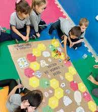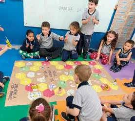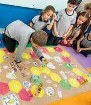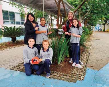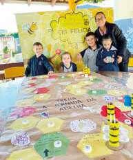 Para aprender sobre a importância da polinização na natureza, as crianças do segundo período observaram as abelhas no meliponário da unidade e descobriram mais sobre o ciclo de vida e as funções desses insetos. Junto com a professora Jamille Rodrigues dos Santos Machado, os pequenos também confeccionaram seus próprios bichinhos utilizando materiais recicláveis — o objetivo era usá-los como peões no jogo “A jornada da abelha”, momento em que testaram os conhecimentos adquiridos.