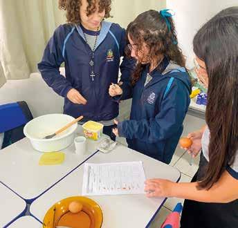 A melhor forma de aprender uma nova língua é conhecendo os termos de objetos e atividades do dia a dia. Por isso, na Escola Municipal Doutor José Antônio Navarro Lins, a professora Silvana Heinzen propôs que os alunos do sétimo ano preparassem uma receita. O alimento escolhido foi a panqueca no estilo americano. Além de reproduzirem o prato do café da manhã com seus familiares, os estudantes conheceram o passo a passo e os ingredientes em inglês e confeccionaram cartazes com imagens do processo.