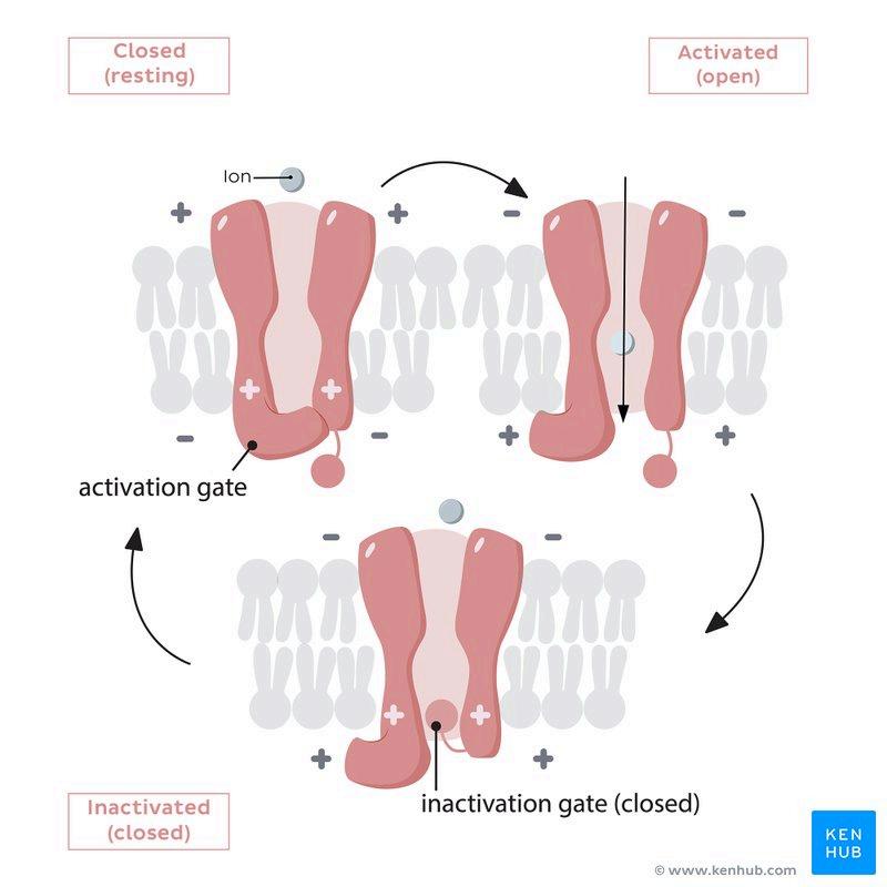 Hay unos receptores que son voltaje dependientes, es decir, que a partir de un voltaje determinado, van a abrirse. La diferencia de cargas genera un voltaje, producido por un gradiente de cargas. Cuanto más gradiente haya, más voltaje se va a crear y por tanto más sodioentrará.