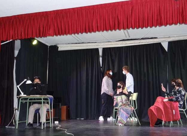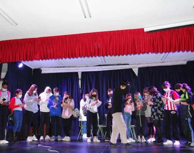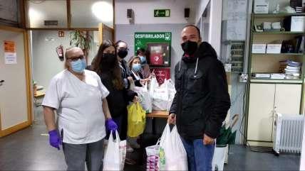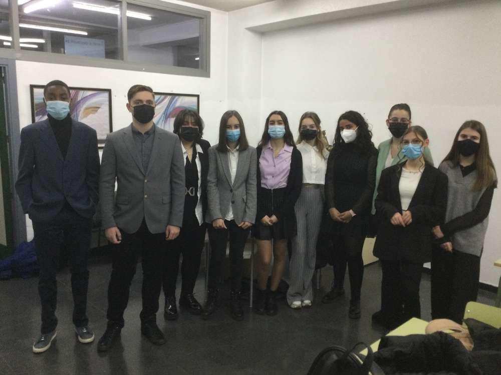 Varios participantes del club de lectura posan con los cuatro libros de la saga