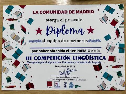 Dos equipos del IES Juan Gris (2º A y 2ºC) lograron colarse en las semifinales de la III Competición lingüística de la CAM que este año ha tenido como temática “Navegando por el Siglo de Oro. Cervantes y la batalla de Lepanto”. Esta hazaña fue un logro ya que solo 30 equipos de casi 300 obtuvieron su plaza.