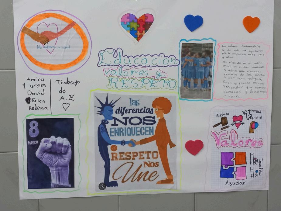 El respeto, la amistad, la empatía, el compañerismo, son actitudes esenciales para lograr una buena armonía y convivencia entre las personas. En esta evaluación, en el IES JUAN GRIS hemos estado trabajando todas ellas. Para ello, los alumnos de 1º B y 1º F hemos trabajado en equipo trayendo cada uno una imagen, foto o dibujo sobre el tema aportando todos nuestro granito de arena