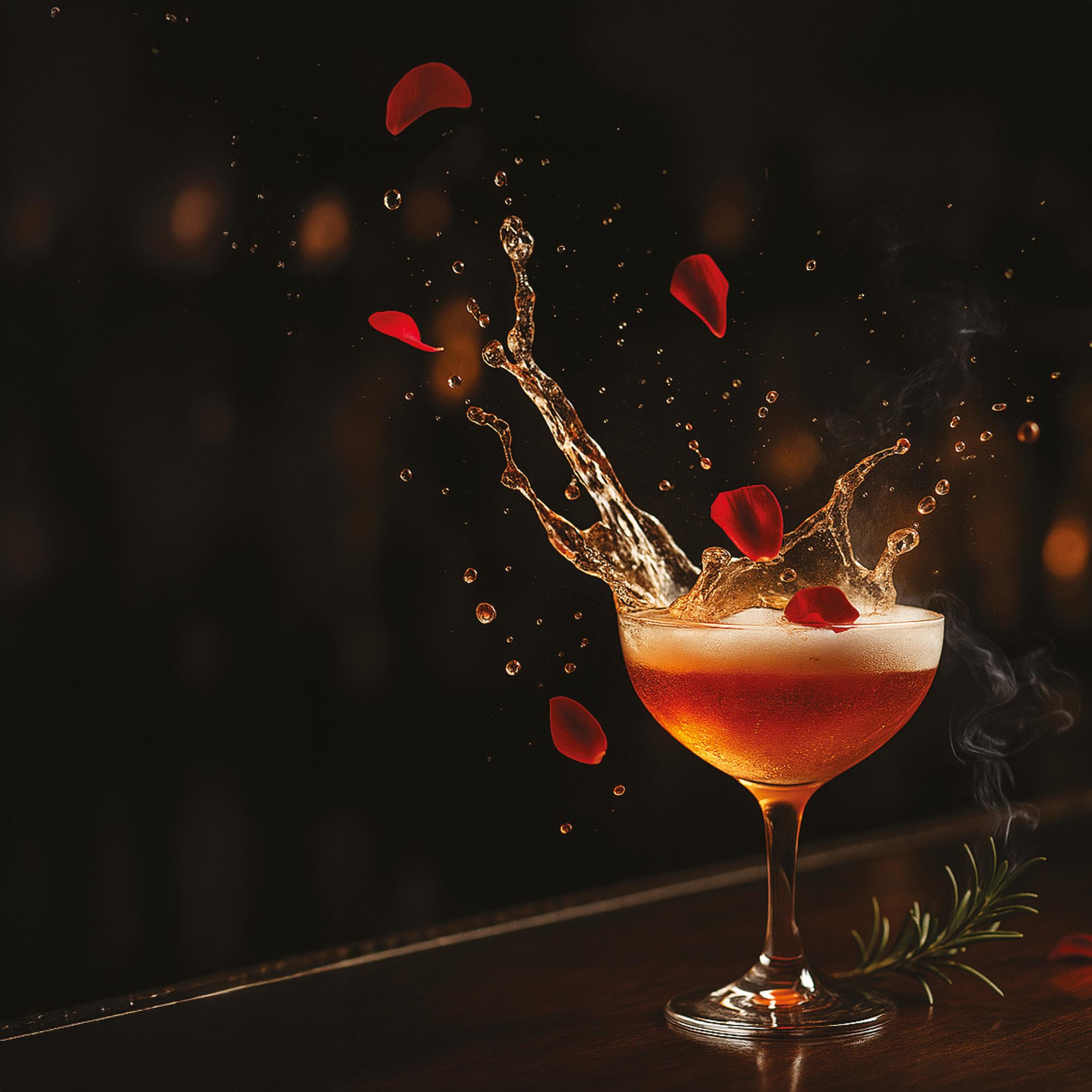 Uncóctel elegante, delicado y profundo, como las palabras justas que dejan eco. Inspirado en la presencia imponente de Julia: inteligente, clásica y con alma luminosa. Se sirve en copa coupe ahumada con romero y decorada con pétalos de rosa y oro comestible. Cada sorbo es un acto de presencia, sofisticado y sutil.