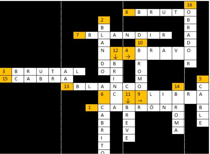 Resuelve el siguiente crucigrama. Ten en cuenta que todas las palabras tienen V: