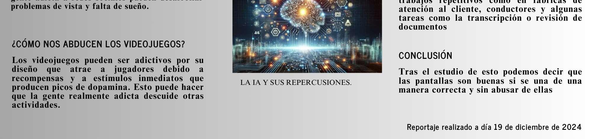 Ya en el instituto, se salta lasclases que menoslegustanyseencierraenlosbañospara seguirjugandoavideojuegosensumóvil.En el recreo, lehicimos una mini entrevista en la quelepreguntamosmuchascosas,como,por ejemplo,porquéempezóajugar,aloquenos respondió que era porque sus padres se habíanseparadoynuncaestabanencasa.También lepreguntamosque sicreía queesoera bueno para él y si iba a intentar cambiarlo, a lo que contesto que, sí, que creía que era bueno para él y que no iba a intentar cambiarlo.