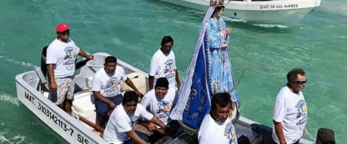 Con este recorrido se celebró el 70o. aniversario de la visita anual de ambos patrones en Sisal. Antes de la actividad, se ofició una santa misa a las 7 de la