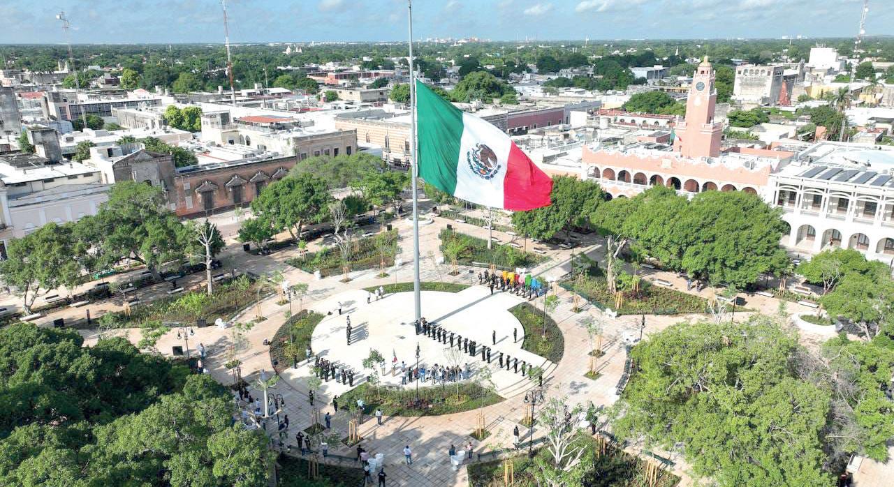 La ceremonia cívica incluyó la entonación del Himno Nacional y del Himno Yucateco, cuya letra fue actualizada