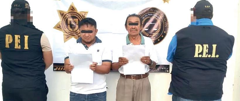 Felipe de Jesús M., de 72 años, y Ángel de Jesús M. C., de 35, imputados por el delito de fraude específico, fueron detenidos hoy por elementos de la Policía de Investigación (PEI) de la Secretaría de Seguridad Pública (SSP) en