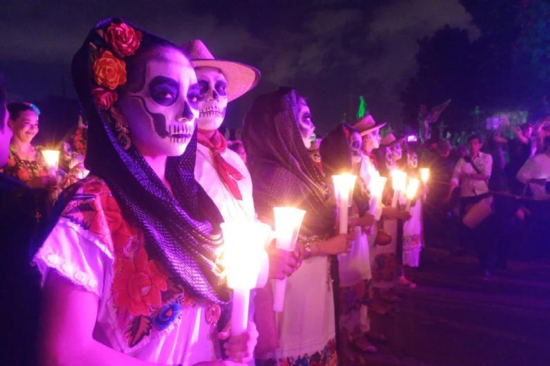 La lluvia amenazó con frustrar el Paseo de las Ánimas en Mérida 2024, pero esto no mermó el entusiasmo de los participantes que se prepararon para recibir a los visitantes, confiados de que el clima daría una tregua para el evento, y así fue.
