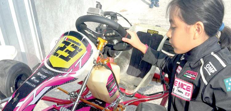 23 la pista del kartodromo ubicada en el autódromo internacional de Yucatán. Hace un año le dijeron que era muy pequeña para correr y que además era niña, y esto en lugar de desanimarla, la impulsó más, y en la actualidad ya tiene su propio auto a gasolina, y con la ayuda de su couch Wilbert Salazar compite con niños casi siempre más grandes que ella en edad y tamaño, con resultados notables. “Cuando corro, siento que debo de dar mi máximo esfuerzo en la pista, porque lo hago por los derechos de los niños”, subraya.