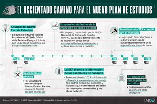 El proceso para la implementación de este nuevo plan de estudios fue planeado al vapor. Desde su presentación en agosto de 2022, la nueva propuesta curricular ha estado rodeada de incertidumbre, descontento y opacidad. En este sentido, dos amparos en contra de las autoridades educativas, promovidos por la Unión Nacional de Padres de Familia (UNPF) y Educación con Rumbo respectivamente, resultaron en la cancelación de la prueba piloto y la suspensión de la impresión y la distribución de los libros de texto gratuitos.