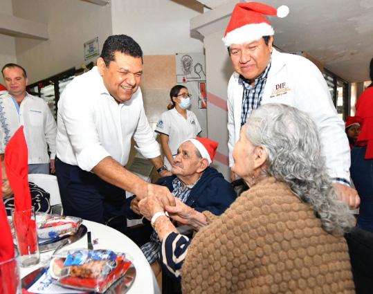 El Gobernador Javier May Rodríguez, convivió con adultos mayores, niñas y niños de diversas casas hogares del Sistema DIF Tabasco, con motivo de la celebración de las fiestas decembrinas, en donde anunció el próximo inicio de trabajos de remodelación de la Casa del Árbol.