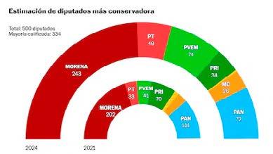 La alianza de Morena, PT y el PVEM, puede obtener 372 escaños en la Cámara de Diputados (el 74.4 por ciento de los lugares), aunque su porcentaje de votos sólo sea de 54.19, lo que significa una sobrerrepresentación del 20.2 por ciento.