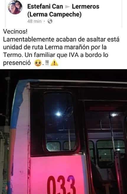 Asaltan a mano armada microbús en Lerma, Campeche ayer por la noche, siendo esto dado a conocer por testigos y algunos de sus familiares.