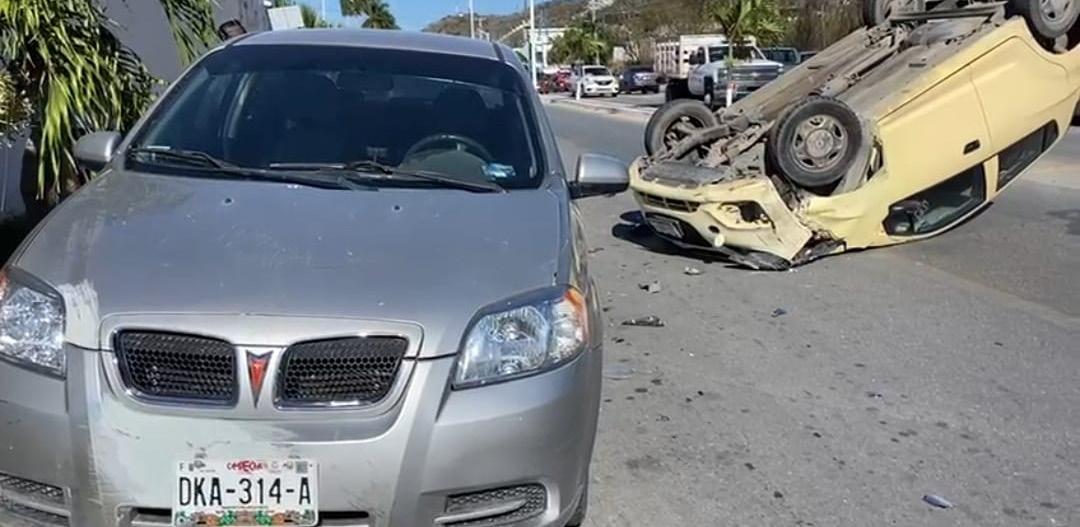 Salva la vida de milagro al chocar en la carrtera Campeche-Lerma y terminar volcado, dañando dos vehículos a su paso.