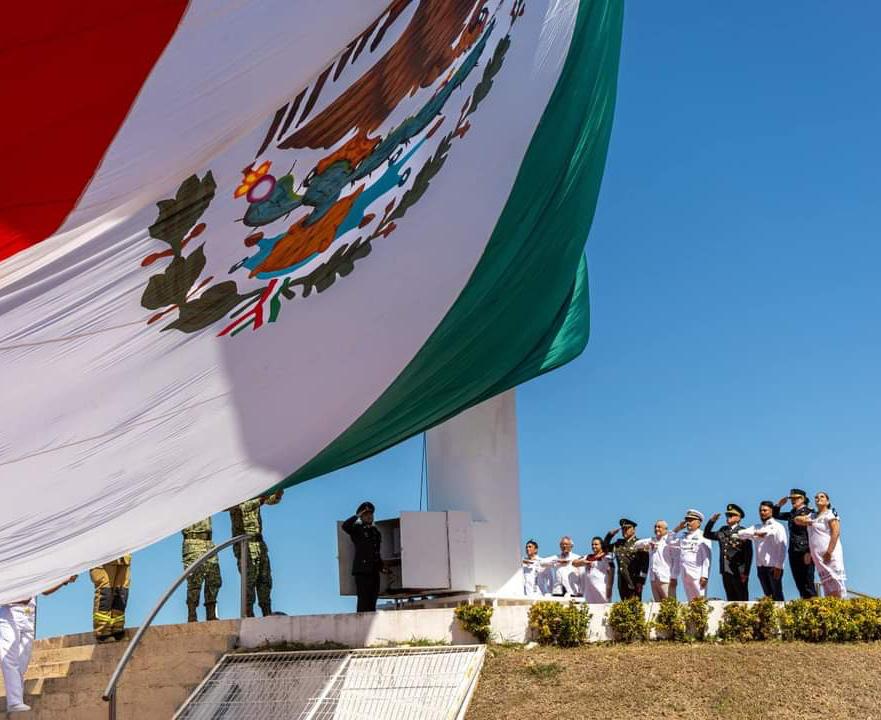 Conmemoran el día de la Bandera en Campeche con un acto cívico en el malecón de la ciudad ante autoridades civiles y de las fuerzas armadas.